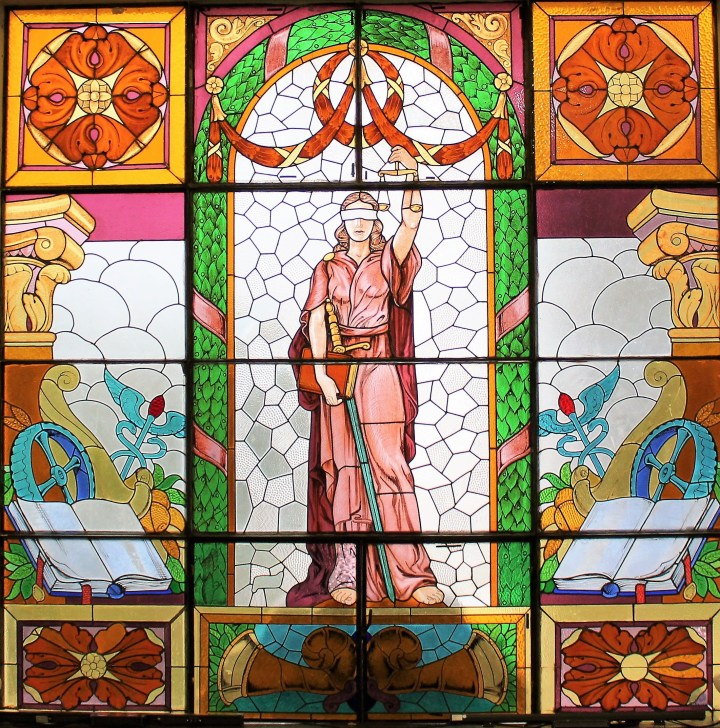 Foto: Vitral de la Diosa Themis del edificio del Tribunal Supremo de Justicia en Sucre, Bolivia. Por Ramiro Orias.